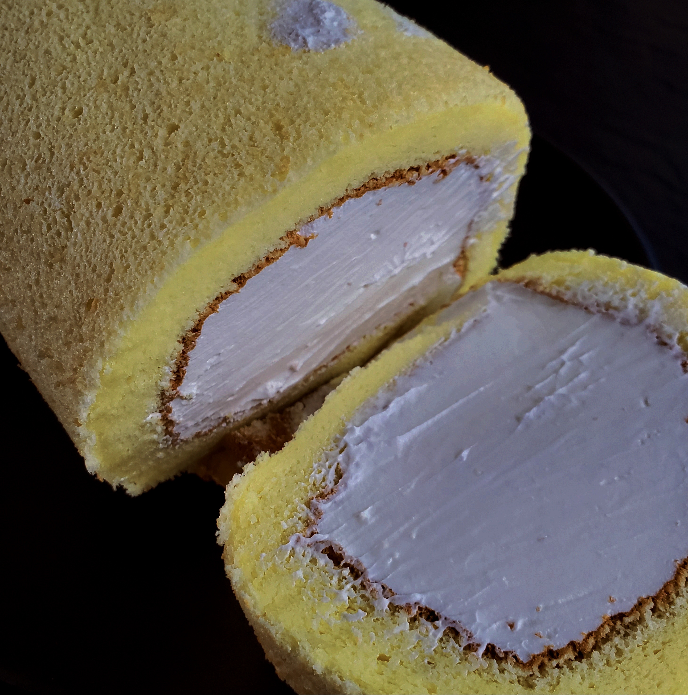 일반 롤 케이크와 달리 한번 롤을 말아줍니다. 크림 듬뿍이라 아주 맛있어요!