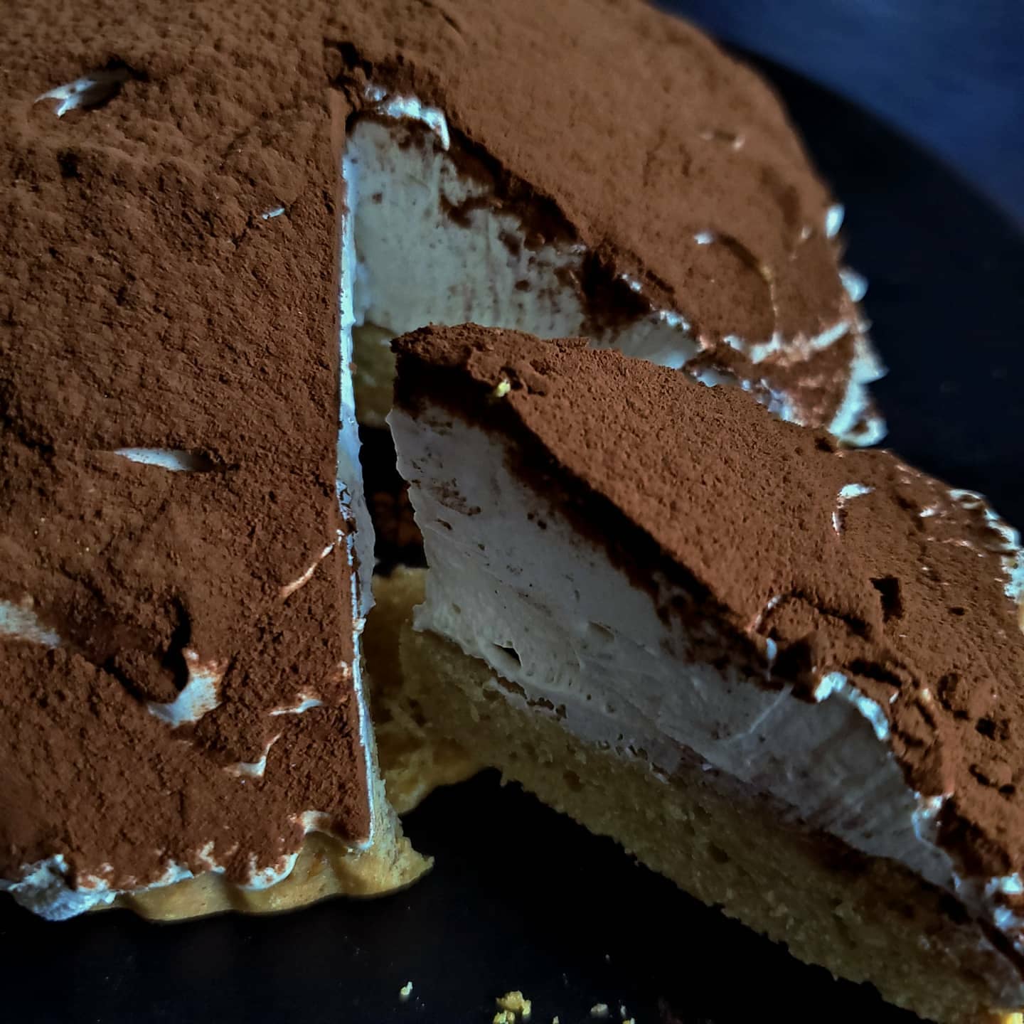 3. 1에 2를 넣고 휘핑 후, 식은 타르트에 얹어준 후 코코아파우더를 뿌려준다,