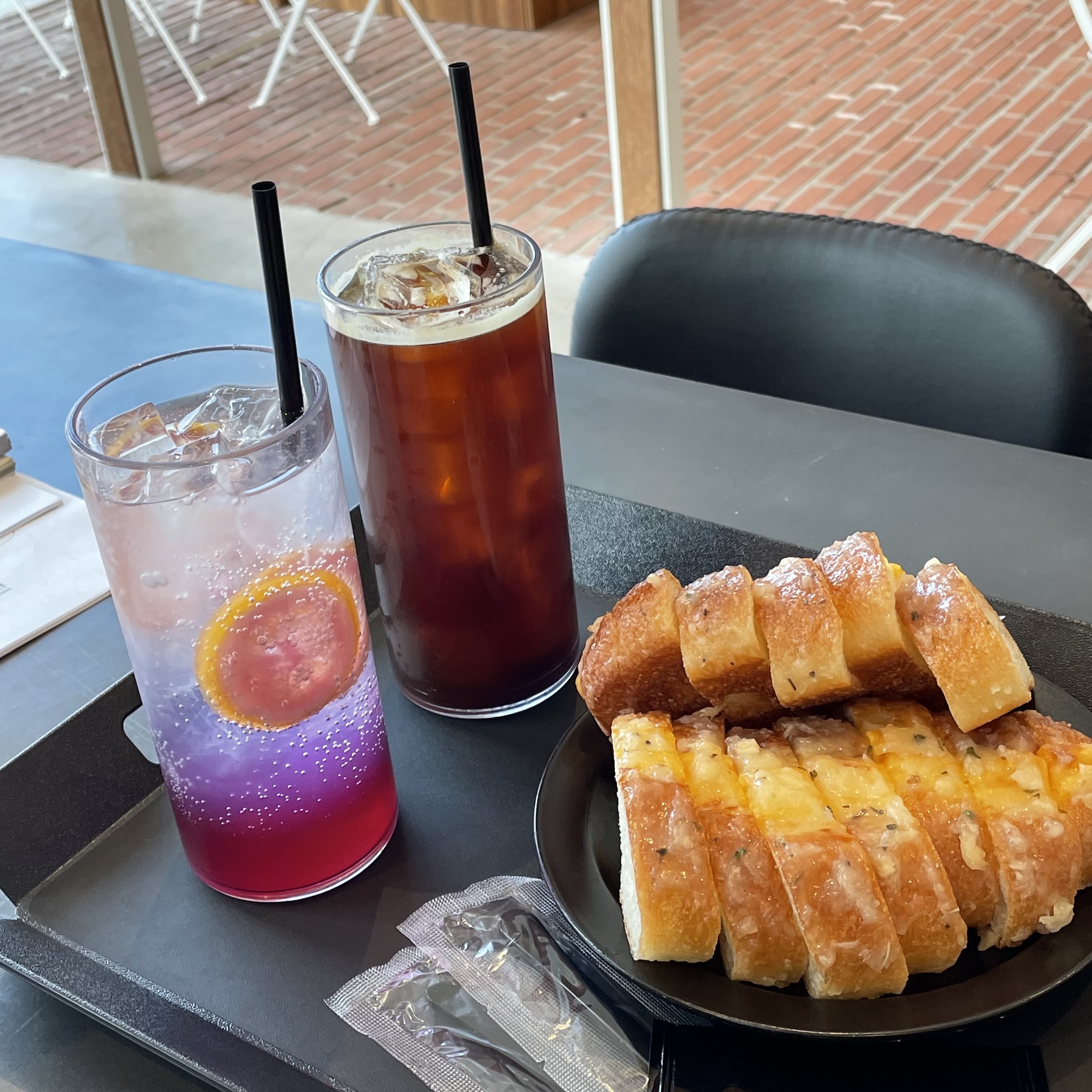 마늘바게트랑 아메리카노랑 레몬에이드 먹었다.