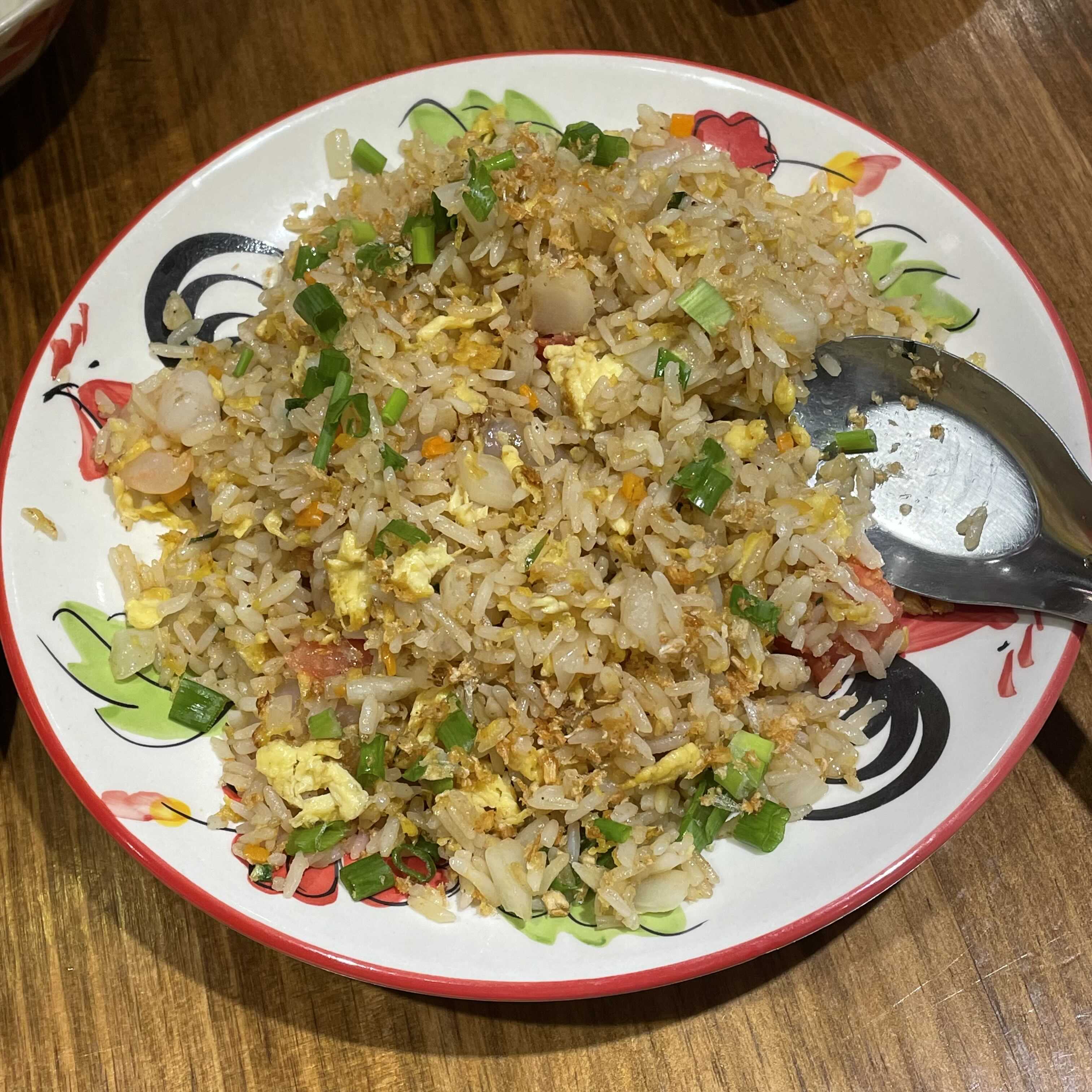 태국 볶음밥이라서, 한국의 밥이랑 식감이 다르다.