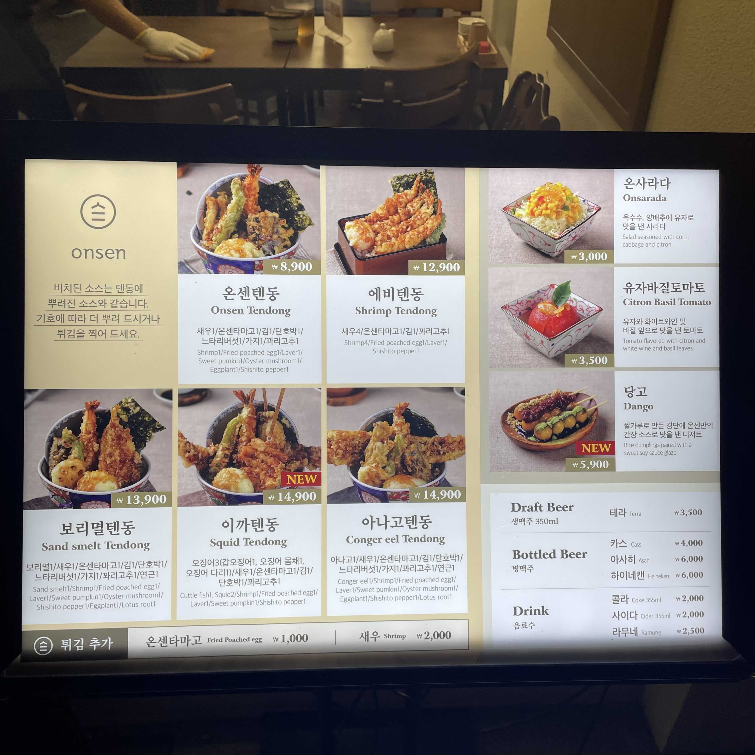 온센은 텐동 전문점이며, 프랜차이즈이다.